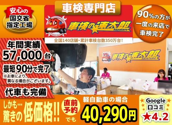 掲げているブランド「車検の速太郎」は全国で140店舗以上、累計で350万台の車検を行う通常90分完了の短時間立合い車検の専門店です。